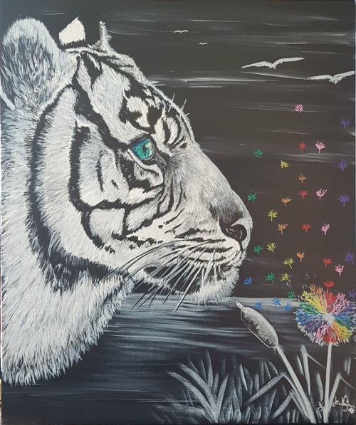 Je réalise principalement des peintures animalières, de l’animal sauvage à l’animal de compagnie. Travailler les paysages, des voyages virtuels qui me transportent, faire un paysage à base de plusieurs photos.