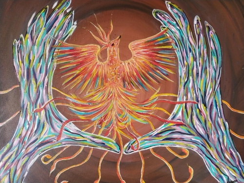 il exprime la chaleur et le froid, il différencie la matière il capte l'énergie exterieure interieure. Le phénix exprime la renaissance l'infini le feu, il renaît de ses cendres.